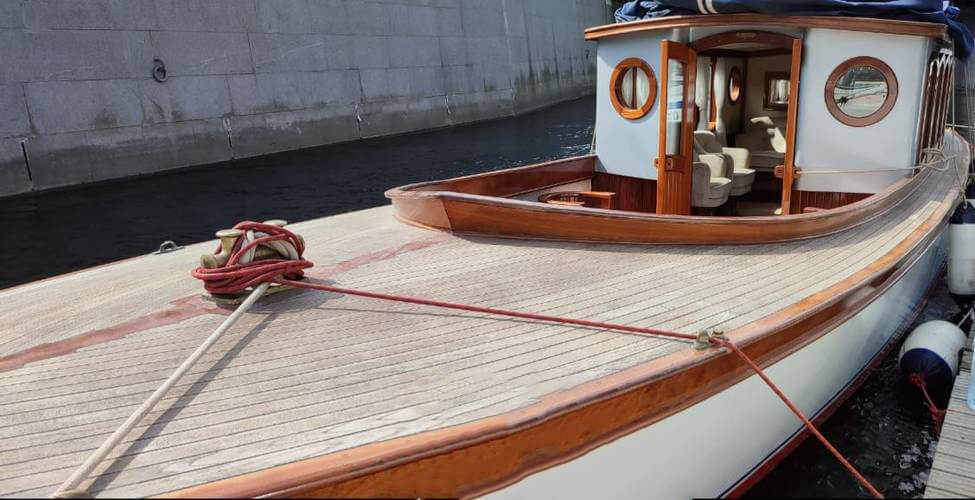 Предлагаем Вашим услугам моторную яхту «Ваше Величество» — она восстановлена по чертежам и фотодокументам яхты 1903 года, созданной для свадебной прогулки по Темзе титулованных особ принцессы Алисы Баттенберг и принца Андрея. Интерьер сделан в стиле викторианской эпохи, полностью создан по фотографиям того времени. Обшивка корпуса и каюты сделаны из красного дерева, тика и дуба, что полностью дает почувствовать роскошь того времени. Поэтому находясь на яхте «Ваше Величество», вы почувствуете всю роскошь и богатство британской королевской семьи начала двадцатого века!