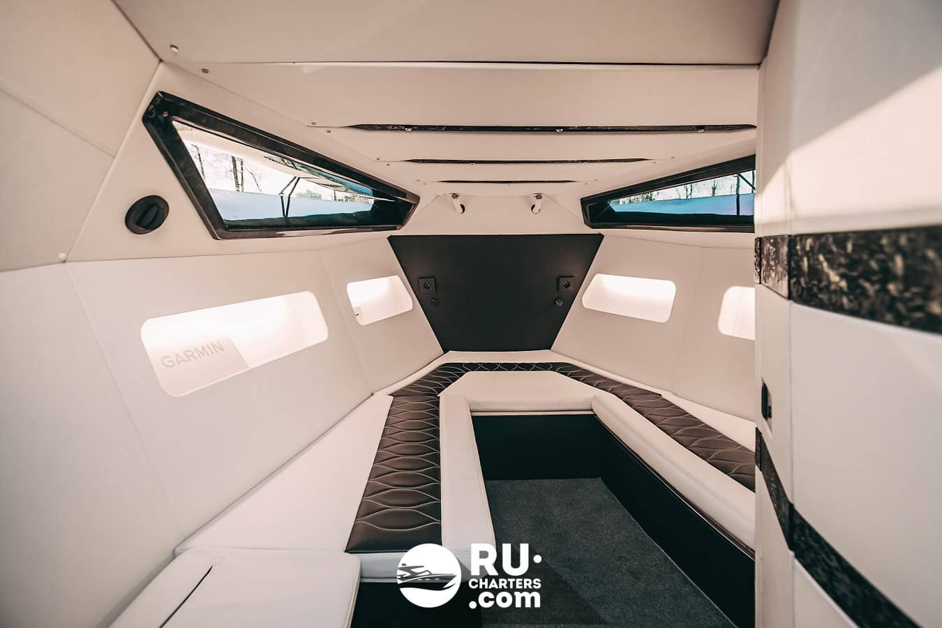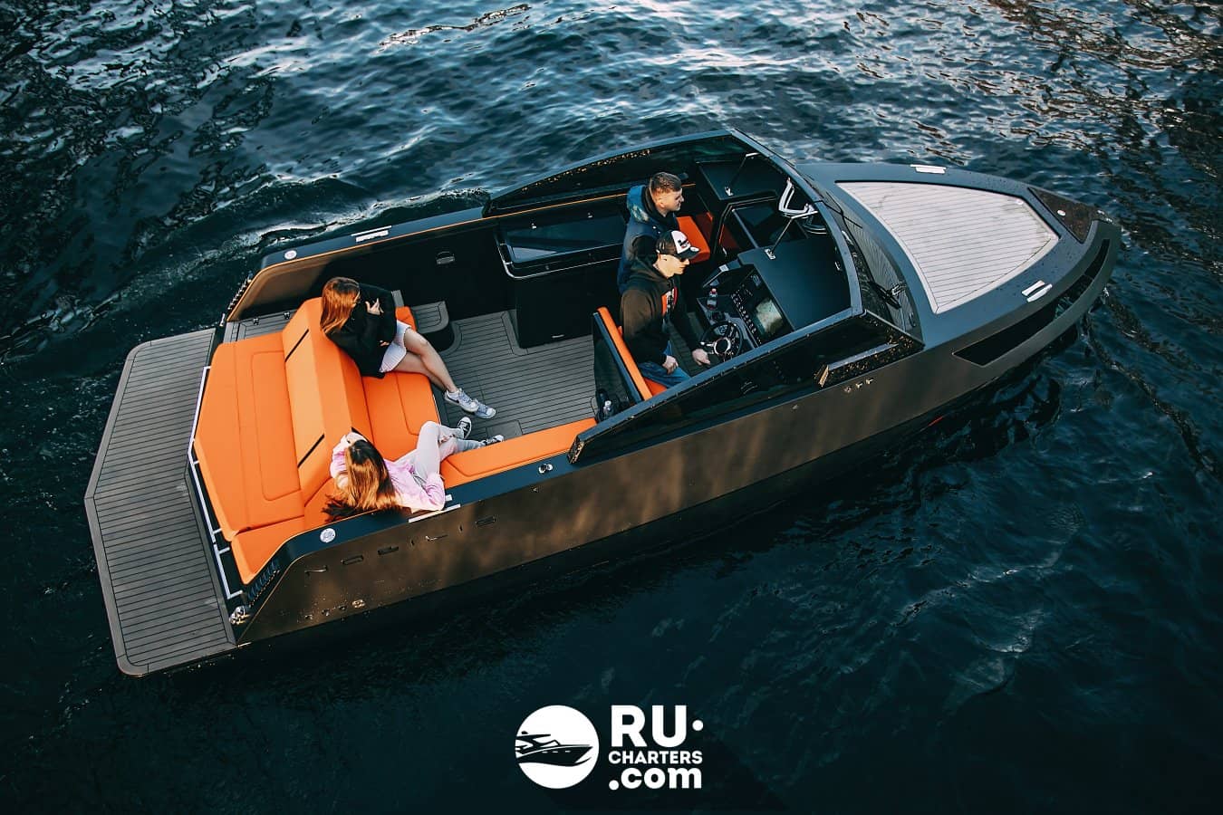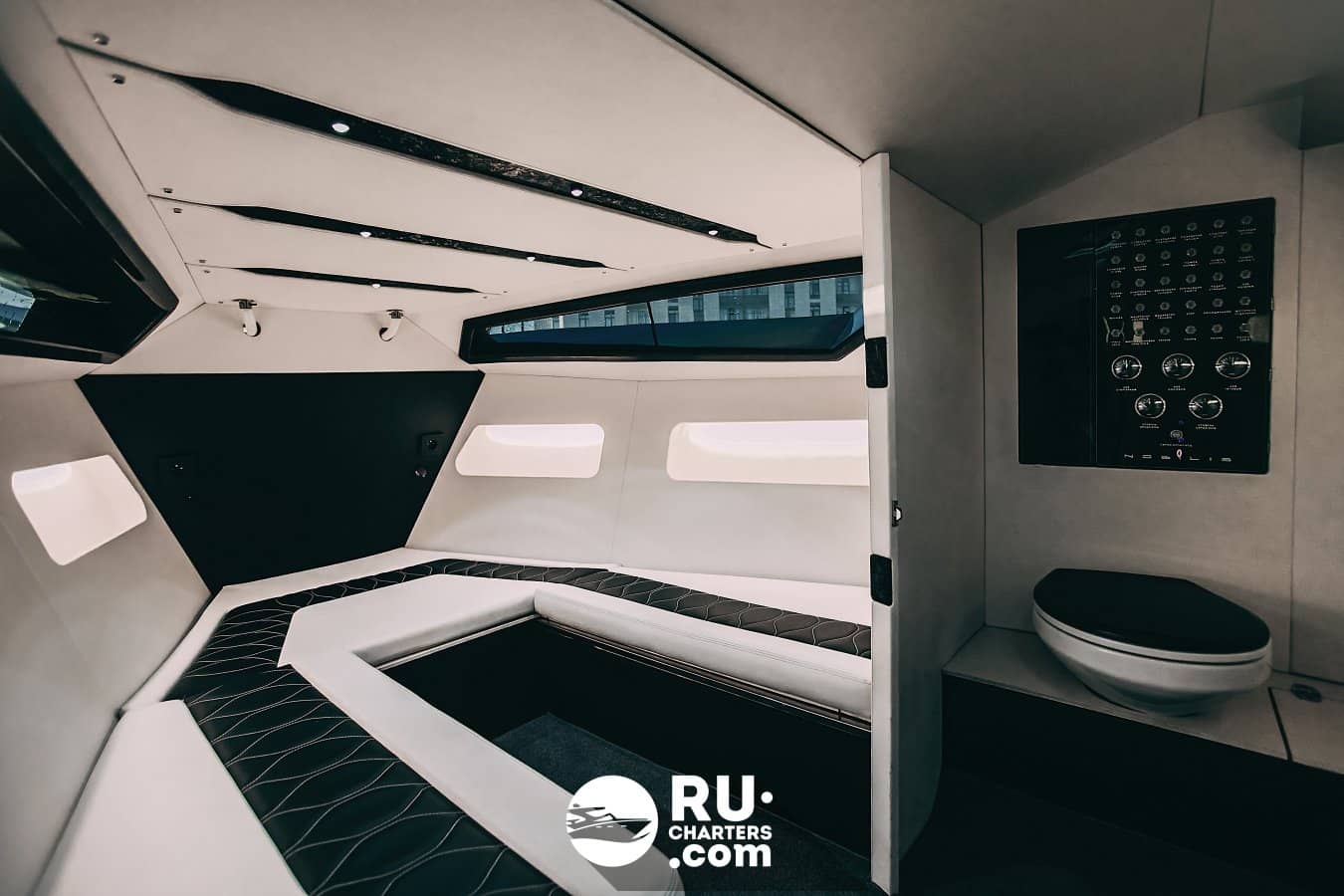 Комфорт и удобство: Катер оборудован всем необходимым для комфортного отдыха. Просторная каюта, кожаные шезлонги на корме, туалет, теплый душ и тент от солнца и непогоды позволяют Вам чувствовать себя как дома, даже находясь на воде. Безопасность: Безопасность пассажиров — наш приоритет. Катер оборудован современными системами безопасности, включая спасательные жилеты и навигационное оборудование.