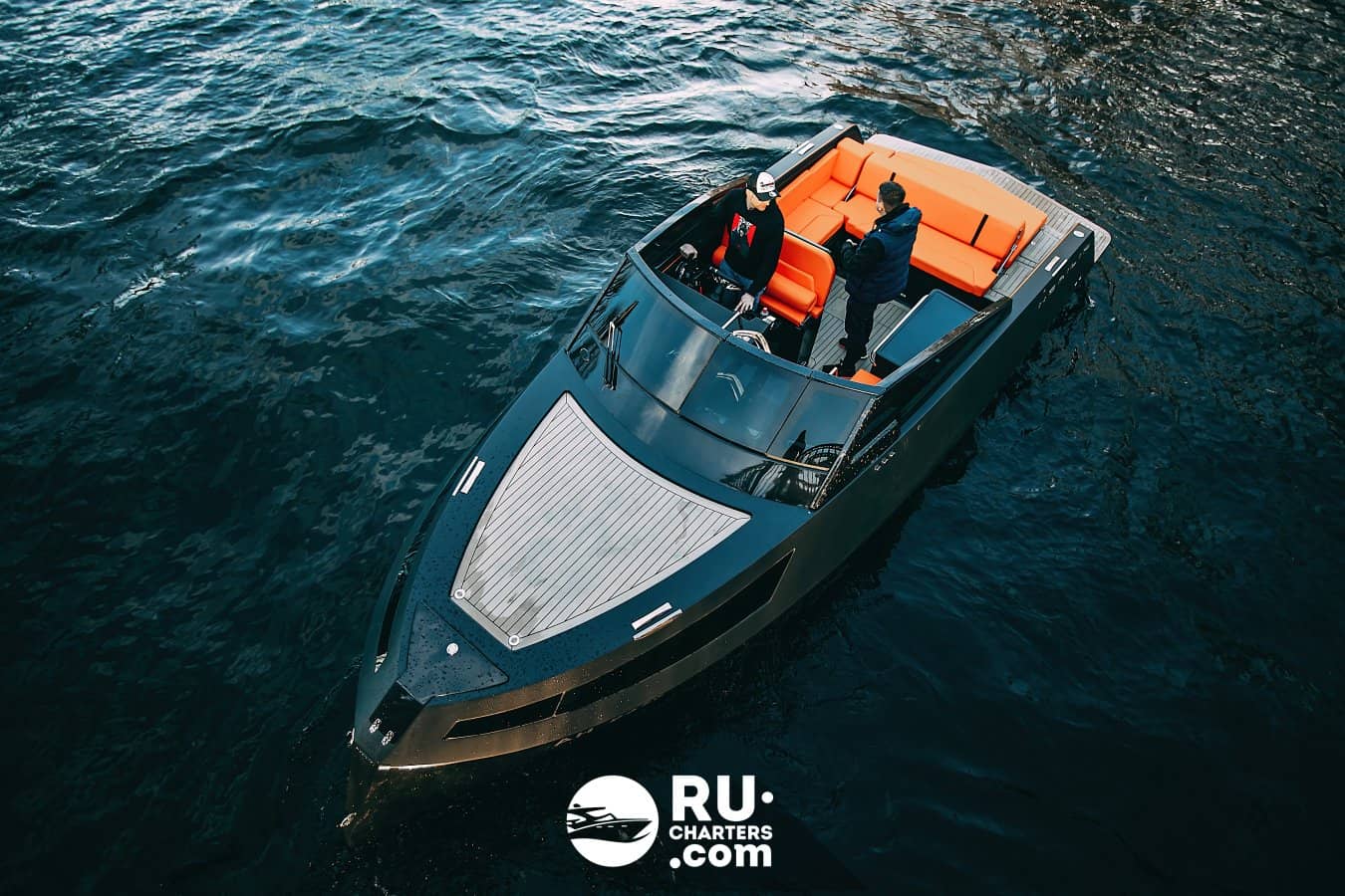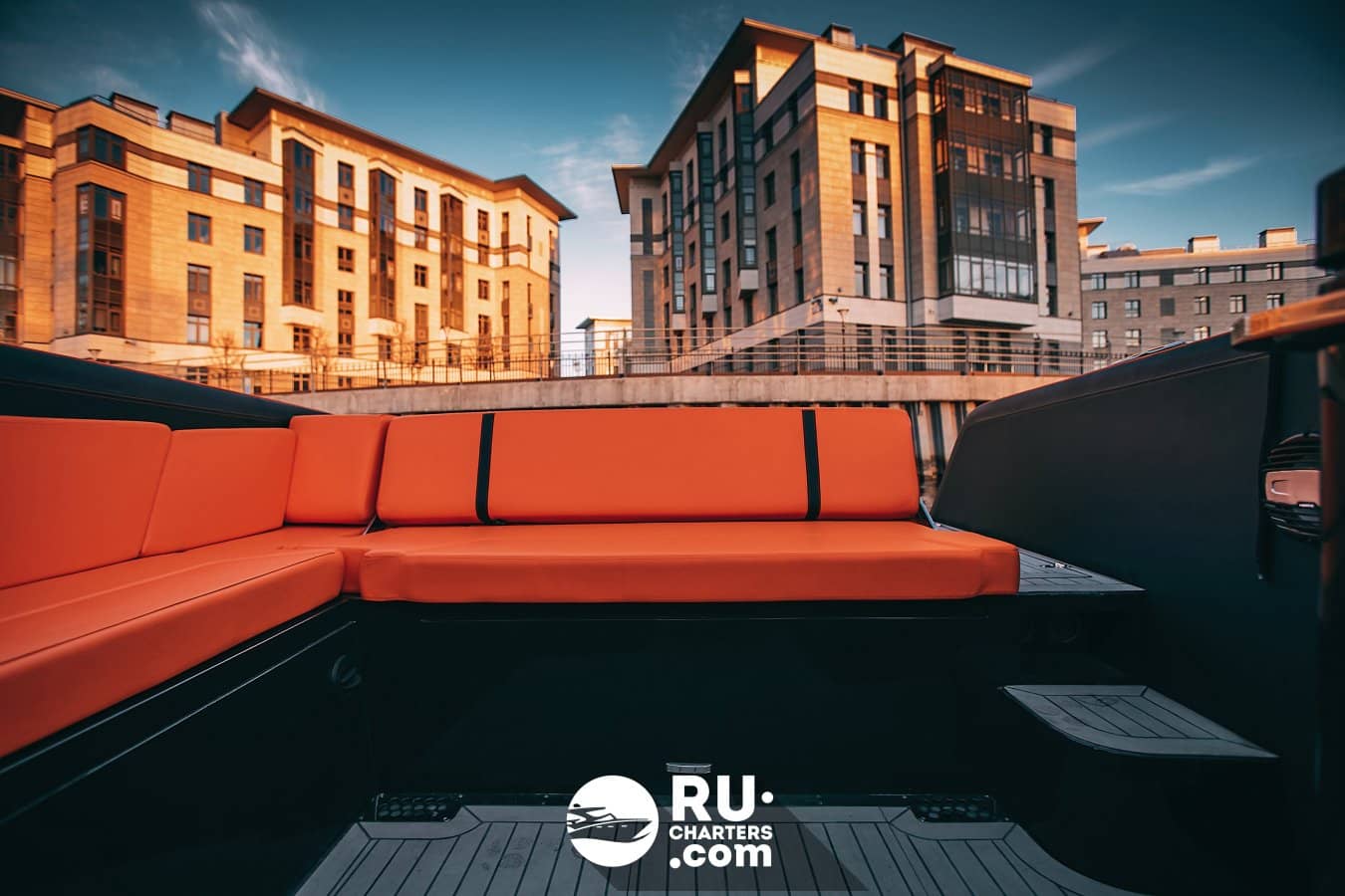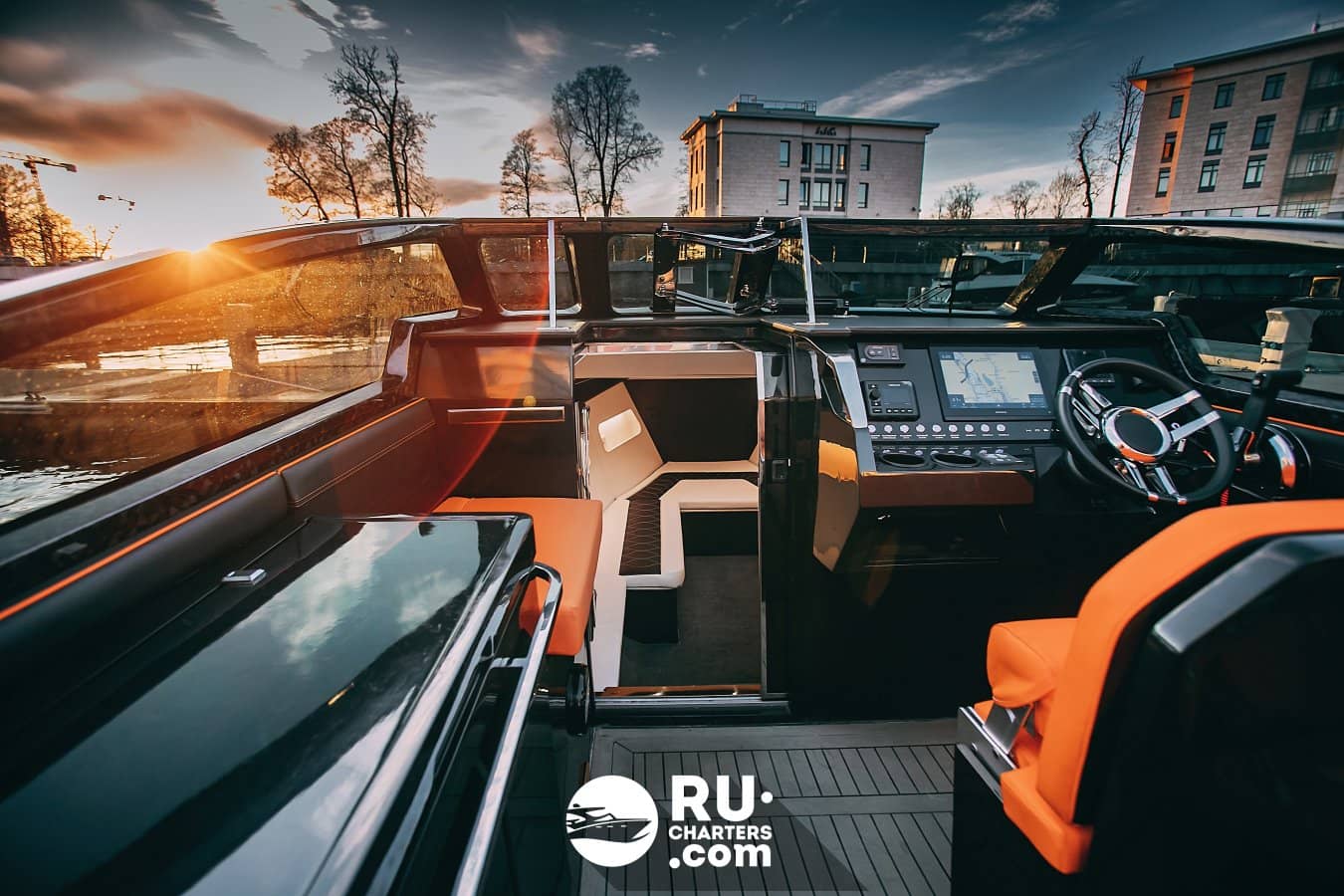 Комфорт и удобство: Катер оборудован всем необходимым для комфортного отдыха. Просторная каюта, кожаные шезлонги на корме, туалет, теплый душ и тент от солнца и непогоды позволяют Вам чувствовать себя как дома, даже находясь на воде. Безопасность: Безопасность пассажиров — наш приоритет. Катер оборудован современными системами безопасности, включая спасательные жилеты и навигационное оборудование.