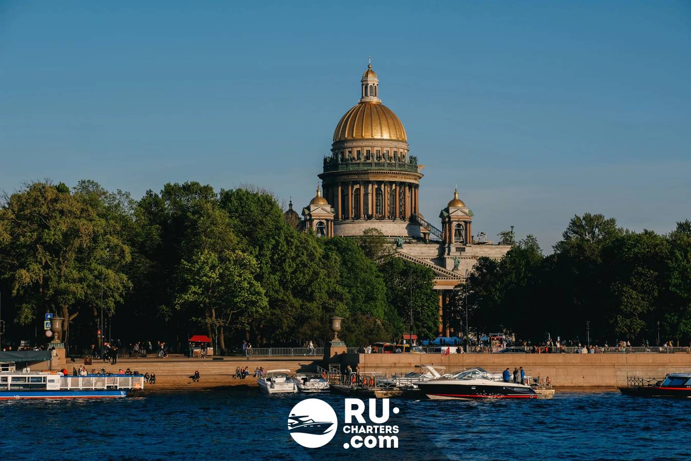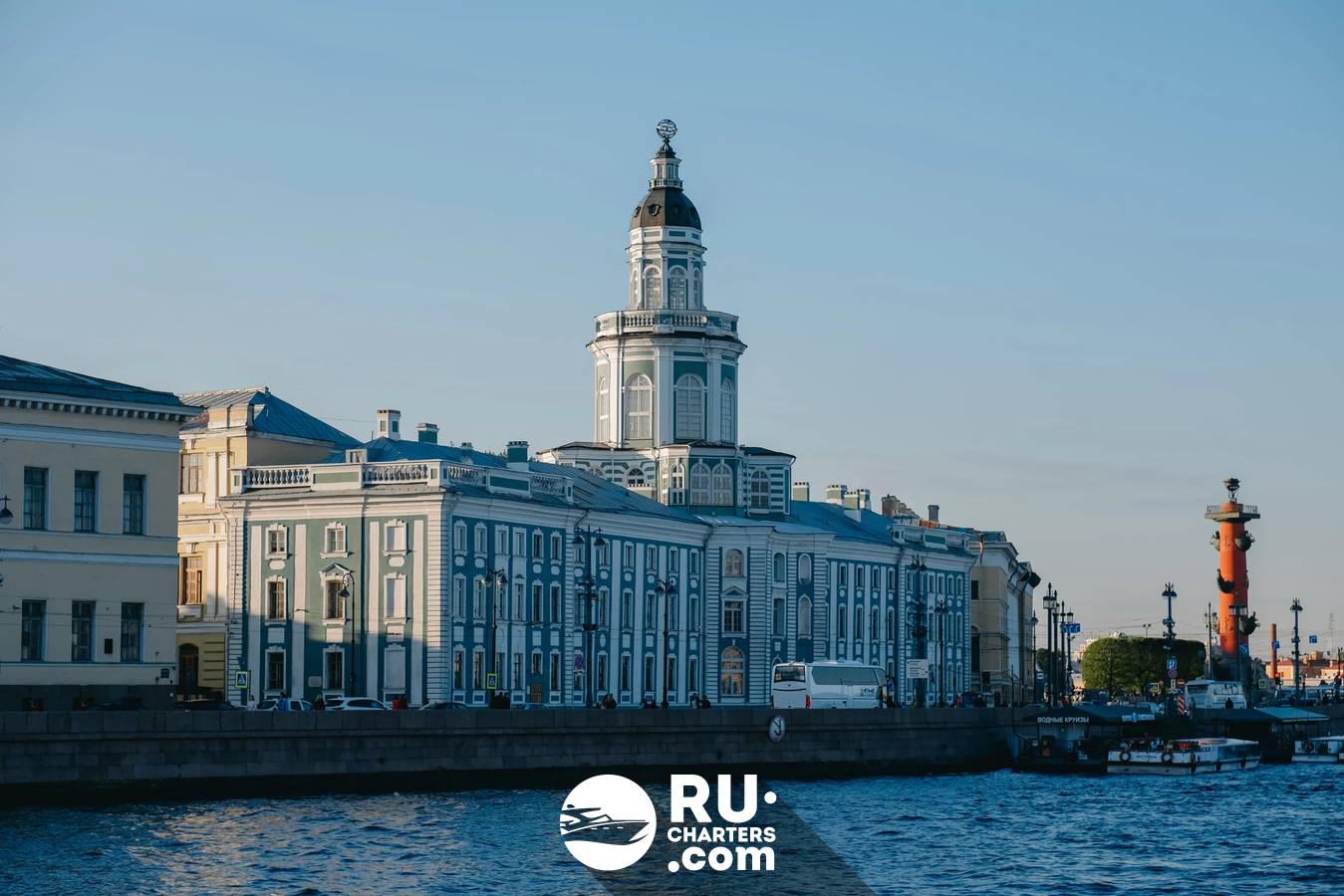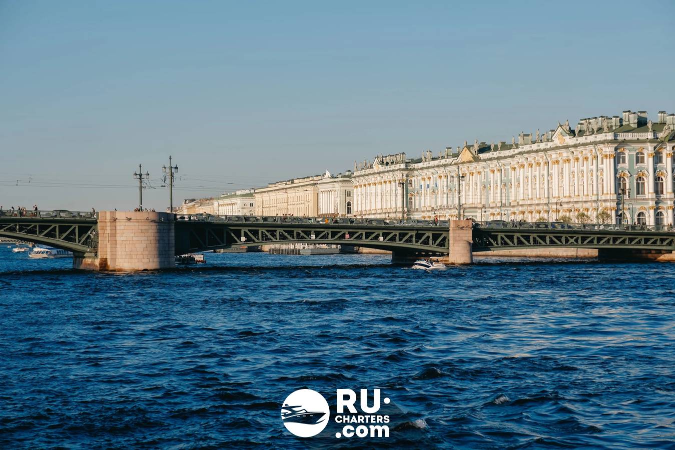 При высоком уровне воды теплоход следует по маршруту «Парадный Петербург».