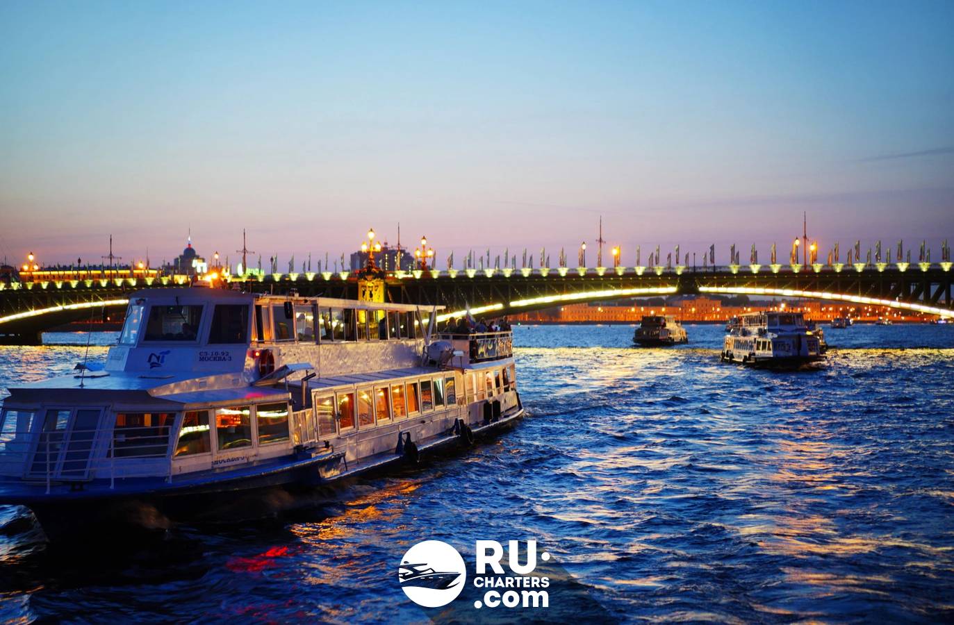 Прогулка осуществляется в сопровождении живой музыки саксофона на комфортабельном двухпалубном теплоходе по маршруту: