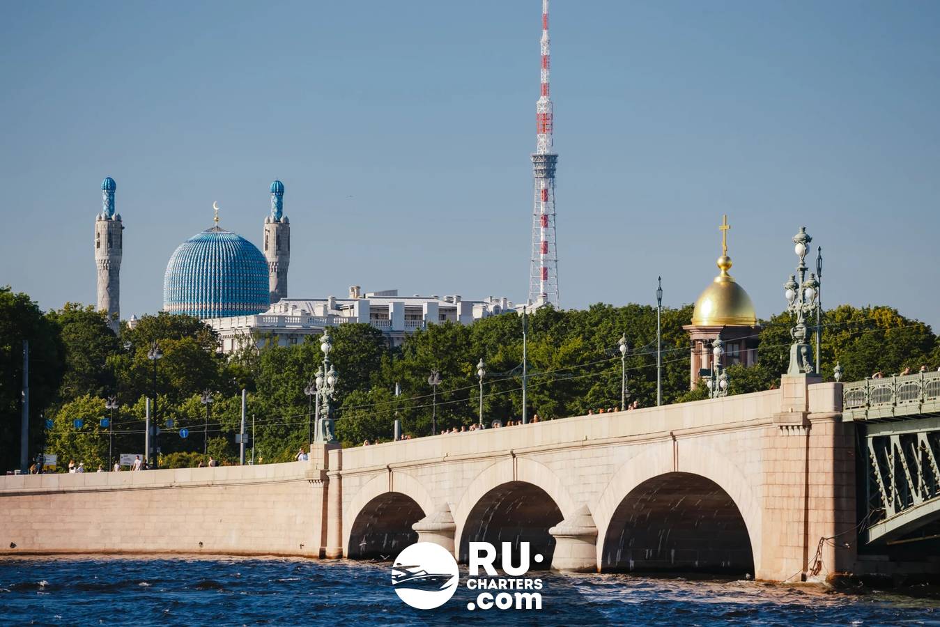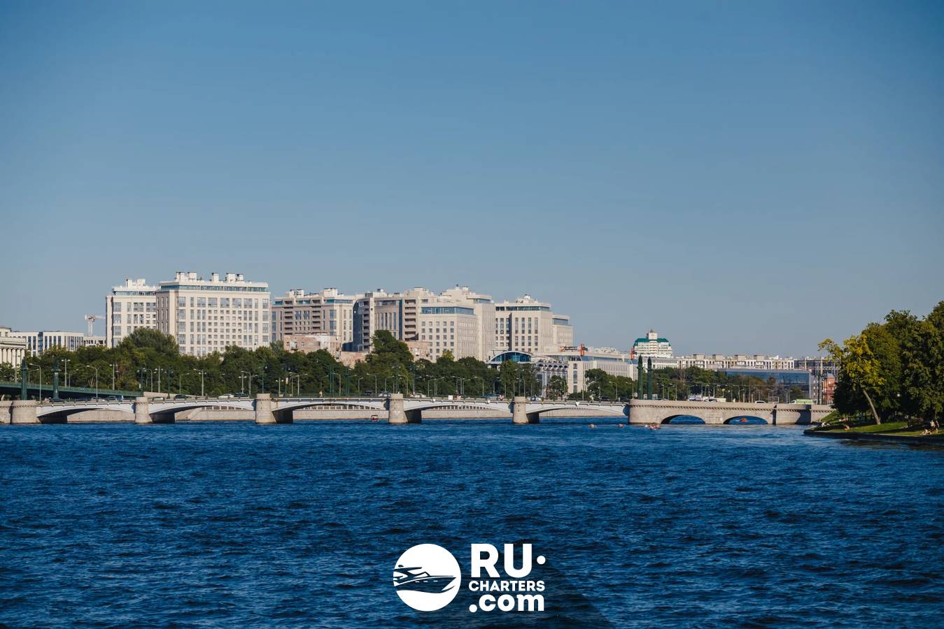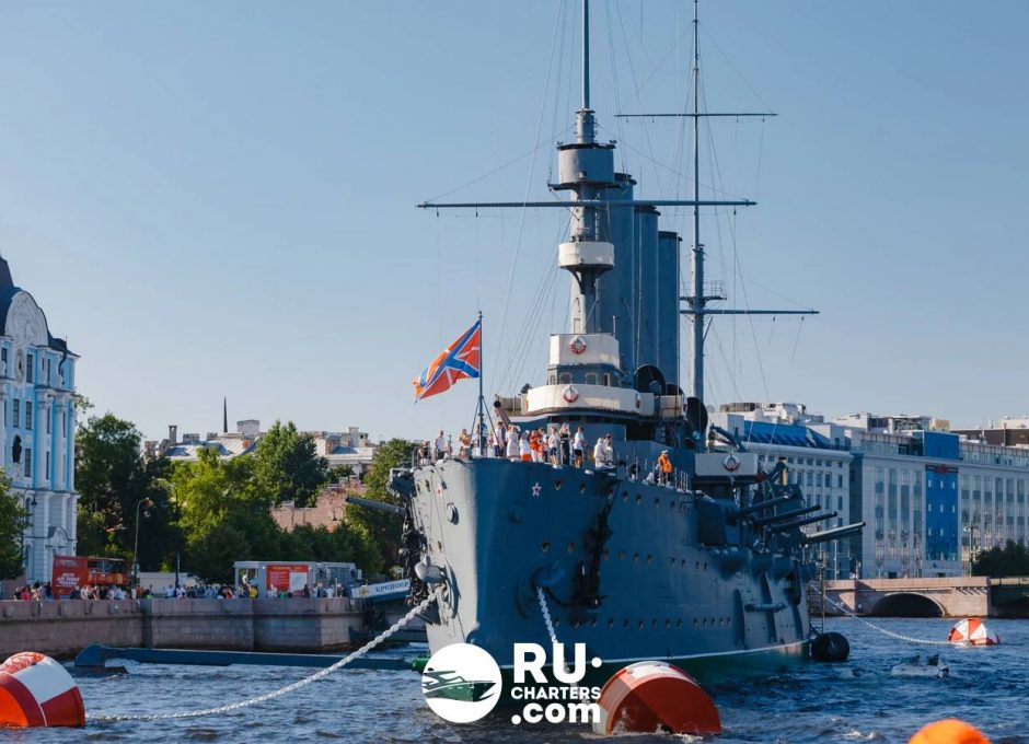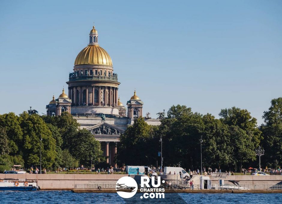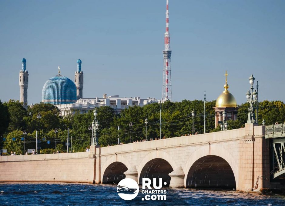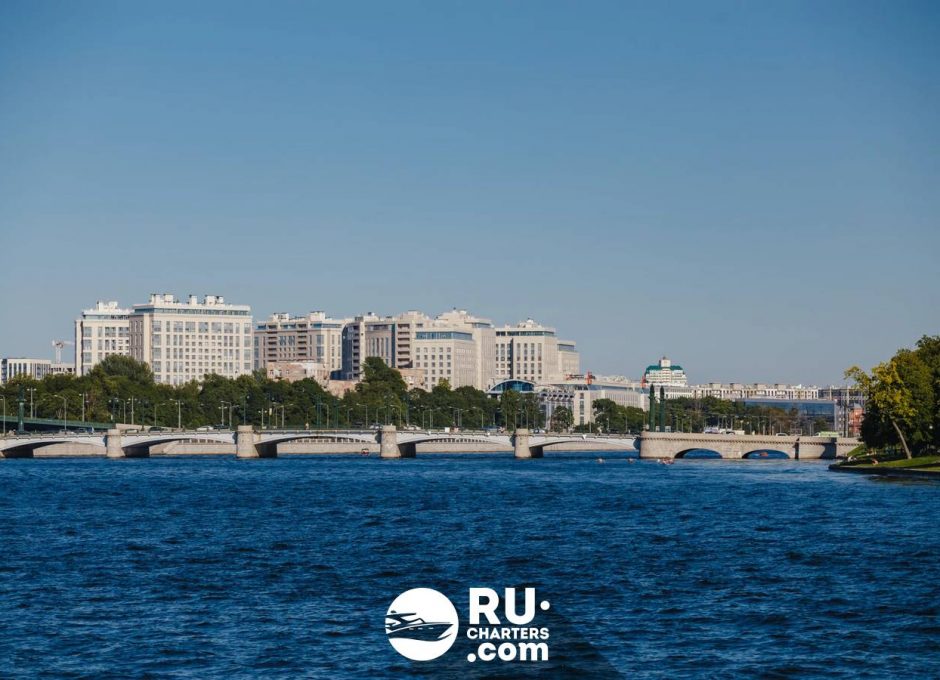 При высоком уровне воды теплоход следует по маршруту «Парадный Петербург».