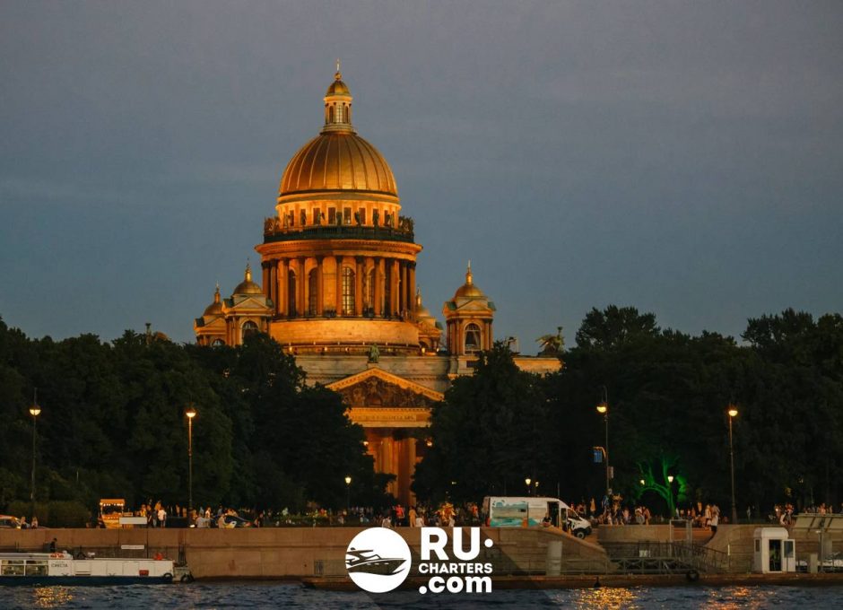 При высоком уровне воды теплоход следует по маршруту «Парадный Петербург».