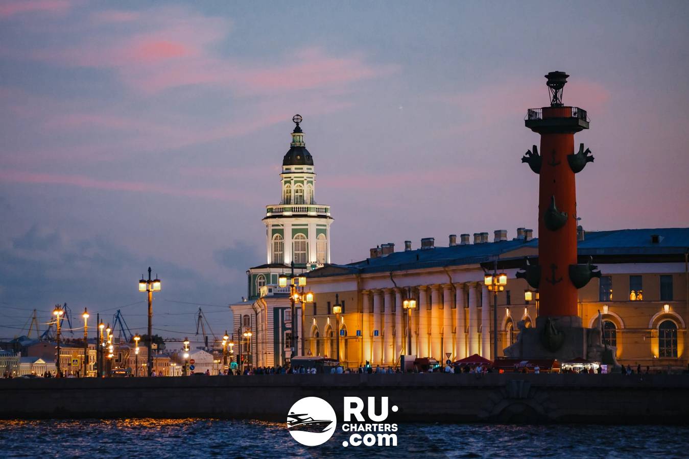 При высоком уровне воды теплоход следует по маршруту «Парадный Петербург».