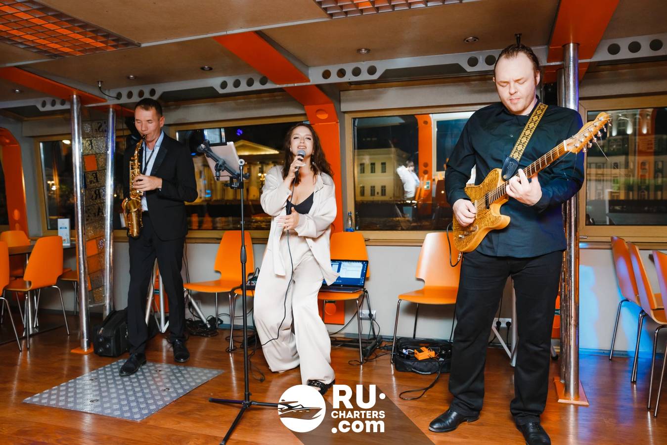 Прогулка осуществляется в сопровождении кавер-группы на комфортабельном двухпалубном теплоходе по маршруту: