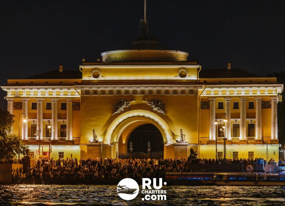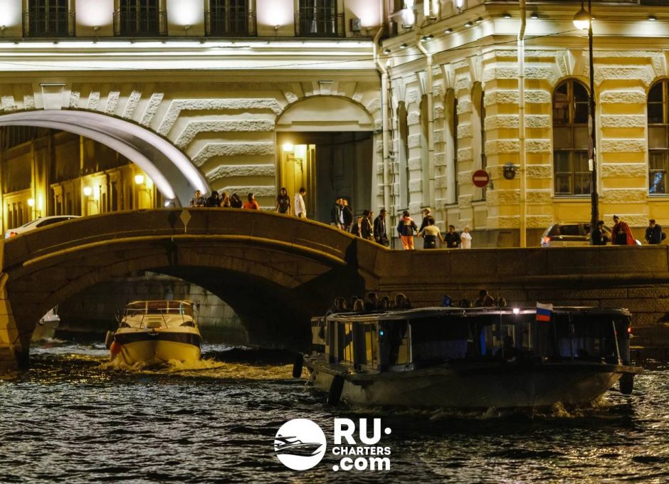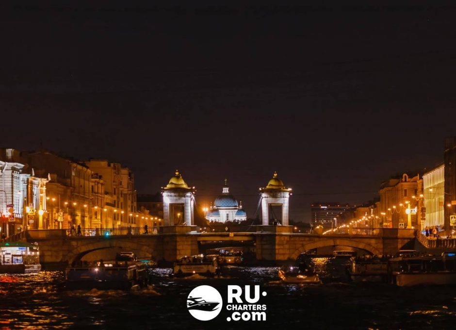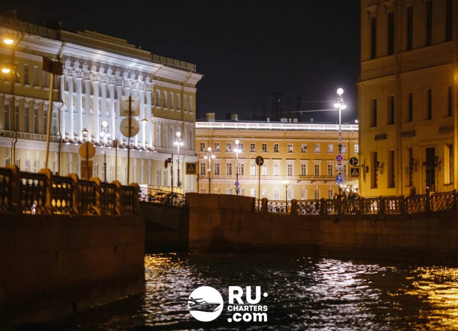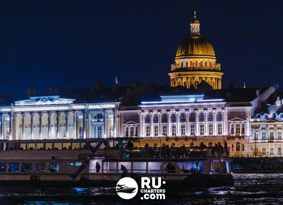 При высоком уровне воды теплоход следует по маршруту «Парадный Петербург».