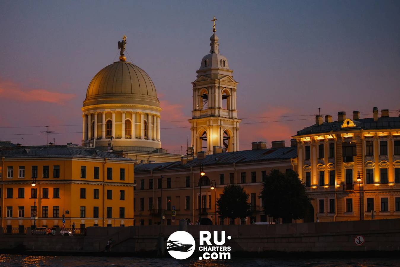 При высоком уровне воды теплоход следует по маршруту «Парадный Петербург».