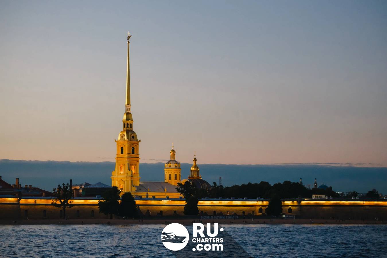 При высоком уровне воды теплоход следует по маршруту «Парадный Петербург».