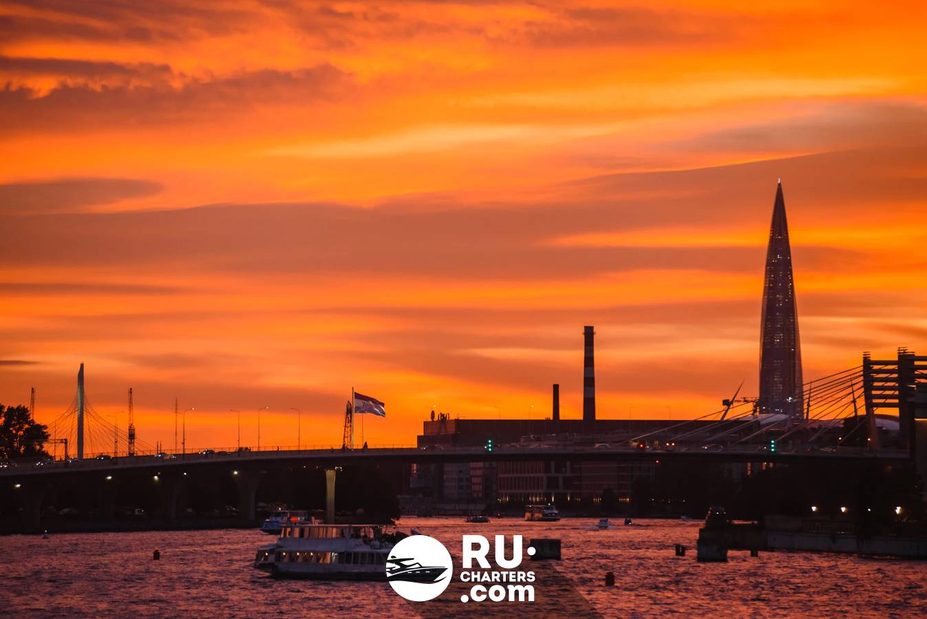 Уходим на закат — это волшебная прогулка по Финскому заливу, где Вы сможете романтично провожать закаты. Вас ждут лучшие виды Финского залива и шикарный закат в районе «Лахта Центр». На борту теплохода присутствует Бар, где Вы сможете приобрести напитки и закуски.