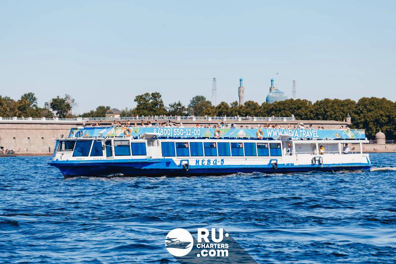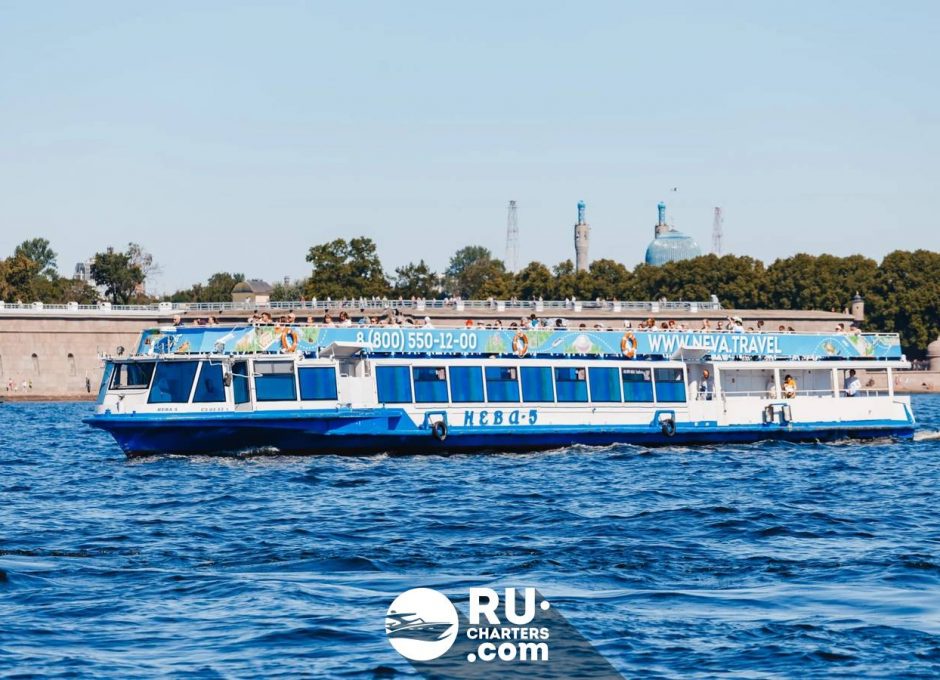 При высоком уровне воды теплоход следует по маршруту «Парадный Петербург».