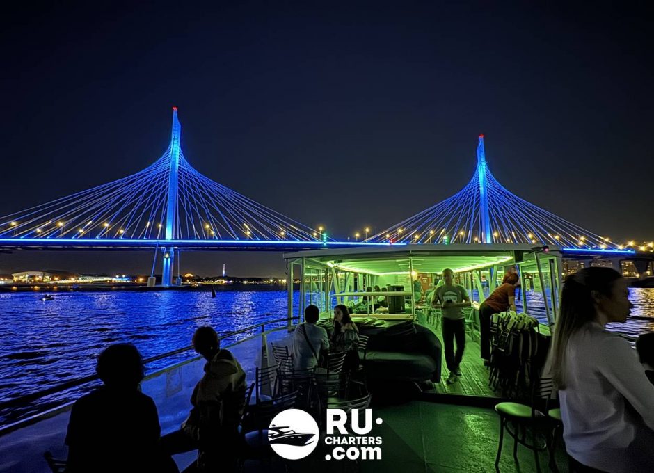 Дискотека под разводными мостами с выходом к Финскому заливу — дискотека на теплоходе, под популярные танцевальные хиты и когда ваш танцпол находится в движении, о чём еще можно мечтать. Разводные мосты ночного Питера, город в свете фонарей и веселое сопровождение друзей или просто гостей. На борту работает бар, где можно приобрести напитки и снеки.