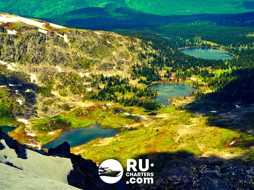 Самое нижнее из озёр находится на высоте 1820 метров над уровнем моря, а самое верхнее — на высоте около 2097 метров. Озёра соединены между собой ручьями и имеют значительный перепад высот, что обуславливает разнообразие природно климатических зон. Нижние озёра окружены горной кедровой тайгой, выше леса сменяются альпийскими лугами, а для окрестностей верхних озёр характерны флора и фауна высокогорной тундры.